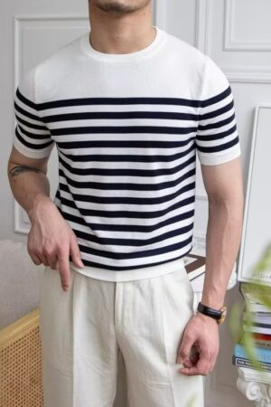 Trendy All-matching Striped T-shirt Men’s Short Sleeve